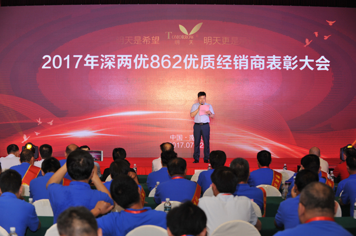 火紅七月,流光溢金,在這么璀璨的日子里,公司在六朝古都--南京隆重召開了“2017年度深兩優862優質經銷商表彰大會”。江蘇明天種業首席育種家、兩優培九育成人鄒江石,公司總經理嚴輝民、副總經理楊地龍、副總經理胡玉成、研發總監王波、廣西恒茂總經理左科生、江西科源董事長曾良明等領導以及來自江蘇、安徽、湖南、湖北、河南、江西和陜西等省的150多位經銷商代表共同出席了此次會議,從每一位到場的嘉賓與合作伙伴的眼神中都可以看到他們對此次會議的熱切期盼。