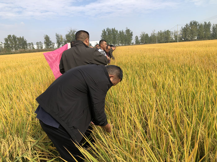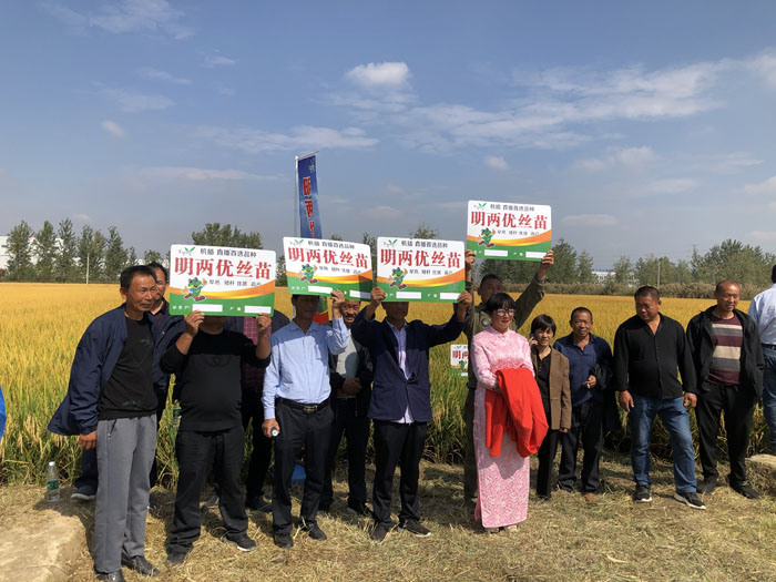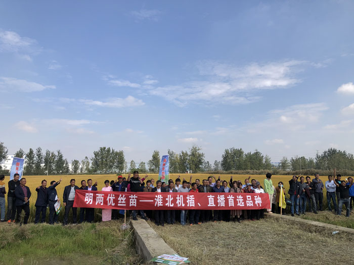 風吹楊柳盡,雨落稻花香。金秋十月,金黃的稻谷隨著秋風翻起金波,豐收在即。公司于10月8日-9日在江蘇省睢寧縣隆重召開明兩優絲苗田間觀摩會議。參加會議有江蘇明天種業科技股份有限公司副總經理王波、總經理助理楊海波及公司代表,睢寧縣明兩優絲苗核心代理商彭奔、各縣市經銷商、種植大戶、育秧合作社代表共計100余人參加會議。