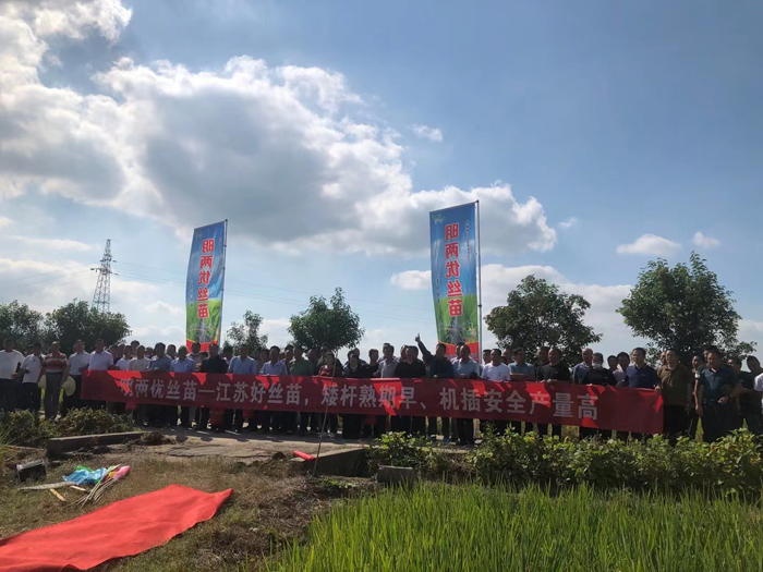 接著由泗陽(yáng)縣種植大戶就明兩優(yōu)絲苗在泗陽(yáng)種植、品種田間表現(xiàn)、肥料運(yùn)籌情況作了詳細(xì)分享。種植戶認(rèn)為明兩優(yōu)絲苗:第一、熟期早特別適合江蘇淮河以北機(jī)插、沿淮直播,第二、株高矮、株型緊湊、抗倒性強(qiáng),第三抗病性強(qiáng),示范及種植四年田間無病害。是一個(gè)非常具有推廣價(jià)值和前景的大品種,同時(shí)也是一個(gè)淮河以北稀缺的雜交水稻機(jī)插合法品種。
