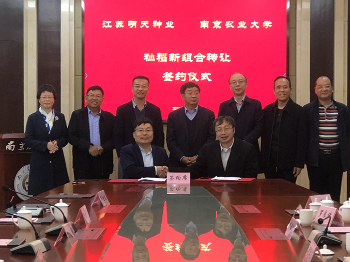 簽約儀式上,陳發(fā)棣校長(zhǎng)對(duì)江蘇明天種業(yè)與南京農(nóng)業(yè)大學(xué)在聯(lián)合技術(shù)攻關(guān)、品種合作開發(fā)、項(xiàng)目共同申報(bào)等方面開展緊密合作取得的成效,給予高度肯定。同時(shí)指出,明天種業(yè)此前與萬院士團(tuán)隊(duì)就高產(chǎn)優(yōu)質(zhì)粳稻品種“寧粳6號(hào)”聯(lián)合開發(fā),建立了良好的合作模式,相信雙方首次合作秈稻品種,也能互利共贏、取得長(zhǎng)足發(fā)展。