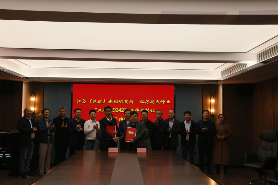 11月25日下午,江蘇明天種業(yè)與淮安市農(nóng)科院、徐州市農(nóng)科院、江蘇(武進(jìn))水稻研究所在公司會(huì)議室,就“淮麥139”、“徐稻119”、“武運(yùn)粳9242”隆重舉行轉(zhuǎn)讓簽約儀式。江蘇明天種業(yè)成功簽約以上三個(gè)品種全國(guó)獨(dú)占實(shí)施許可經(jīng)營(yíng)權(quán)。江蘇省農(nóng)業(yè)農(nóng)村廳、江蘇省農(nóng)業(yè)科學(xué)院、淮安市農(nóng)業(yè)科學(xué)院、徐州市農(nóng)業(yè)科學(xué)院、江蘇(武進(jìn))水稻研究所等領(lǐng)導(dǎo)、專家到會(huì)見(jiàn)證。會(huì)議由江蘇明天種業(yè)科技股份有限公司嚴(yán)輝民總經(jīng)理主持。 簽約儀式上,育種團(tuán)隊(duì)代表淮安市農(nóng)科院楊子博主任、徐州市農(nóng)科院胡婷婷主任、武進(jìn)所朱邦輝副所長(zhǎng)分別就三個(gè)品種的育種思路及品種特性做了詳細(xì)的介紹;明天種業(yè)經(jīng)營(yíng)團(tuán)隊(duì)介紹了目前三個(gè)品種的試驗(yàn)示范情況以及品種的精準(zhǔn)定位和推廣思路,并表示與育種團(tuán)隊(duì)共同做大做強(qiáng)三個(gè)品種的決心。 淮安市農(nóng)科院彭杰書(shū)記、徐州市農(nóng)科院楊峰副院長(zhǎng)、武進(jìn)所徐玉峰所長(zhǎng)分別對(duì)明天種業(yè)團(tuán)隊(duì)給予高度贊揚(yáng),表示品種能簽約明天種業(yè)很是放心,此前明天種業(yè)與三家單位已有深厚的合作基礎(chǔ),成功建立了良好的合作模式,相信此次合作在目前種業(yè)大環(huán)境下將產(chǎn)生里程碑的意義。 與會(huì)的江蘇省農(nóng)科院劉賢金副院長(zhǎng)、江蘇省農(nóng)業(yè)農(nóng)村廳種業(yè)管理處馬愛(ài)京處長(zhǎng)、種子管理站何金龍站長(zhǎng)、南繁南鑒站許明站長(zhǎng)分別對(duì)三個(gè)品種的合作表示祝賀,也表示根據(jù)中央一號(hào)文件中提出的全面實(shí)施種業(yè)振興、加快打造種業(yè)振興骨干力量的要求,明天種業(yè)作為農(nóng)業(yè)農(nóng)村部遴選的國(guó)家種業(yè)陣型企業(yè)應(yīng)有所擔(dān)當(dāng),將以此次科企合作作為新的起點(diǎn),創(chuàng)新思路,大膽開(kāi)拓,引領(lǐng)江蘇種業(yè)邁入更高的臺(tái)階。 江蘇省農(nóng)業(yè)農(nóng)村廳俞衛(wèi)東二級(jí)巡視員對(duì)此次合作雙方表示祝賀,對(duì)科企合作的模式給予充分肯定,并指出江蘇省農(nóng)業(yè)農(nóng)村廳種業(yè)處、種子管理站及南繁南鑒站作為種子服務(wù)部門,應(yīng)加強(qiáng)服務(wù)意識(shí),聯(lián)合更多省內(nèi)科研和企業(yè)力量,將此合作模式在省內(nèi)大力推廣,同時(shí)勉勵(lì)明天種業(yè)要與育種單位,要共同對(duì)這些好品種研究配套的高產(chǎn)優(yōu)質(zhì)栽培方法;要結(jié)合推廣部門建好高產(chǎn)示范方,盡快加大推廣力度。推動(dòng)江蘇稻麥產(chǎn)業(yè)的發(fā)展,共同為保障江蘇及國(guó)家糧食安全、農(nóng)民增收作出貢獻(xiàn)。 淮安市農(nóng)業(yè)科學(xué)院顧正中研究員、江蘇(武進(jìn))水稻研究所徐曉杰書(shū)記、江蘇明天種業(yè)科技股份有限公司副總經(jīng)理王波、徐江、師洪飛、總經(jīng)理助理韓國(guó)標(biāo)等相關(guān)領(lǐng)導(dǎo)、專家參加此次會(huì)議。